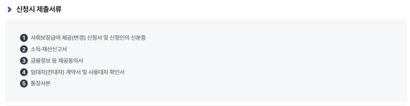 신분증(주민등록증, 운전면허증 등) 임대차계약서 (임차 가구의 경우) 소득 증빙자료 (근로소득 원천징수영수증, 사업소득 확인서 등) 통장 사본