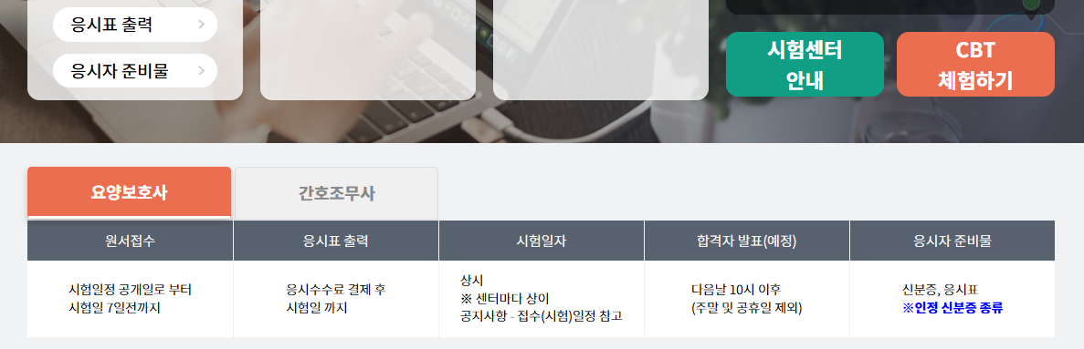 요양보호사 시험은 필기 1과목 + 실기 1과목으로 구성됩니다.