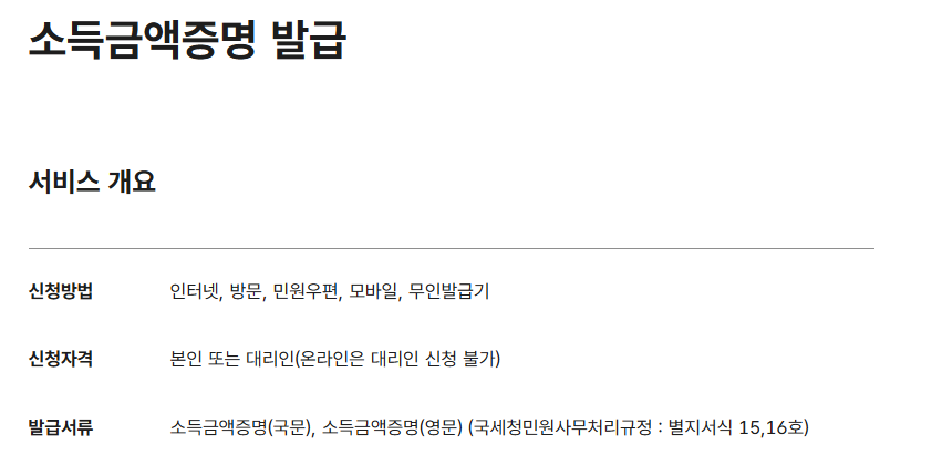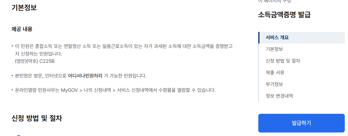 - 발급 연도: 확인하고자 하는 소득이 있는 연도