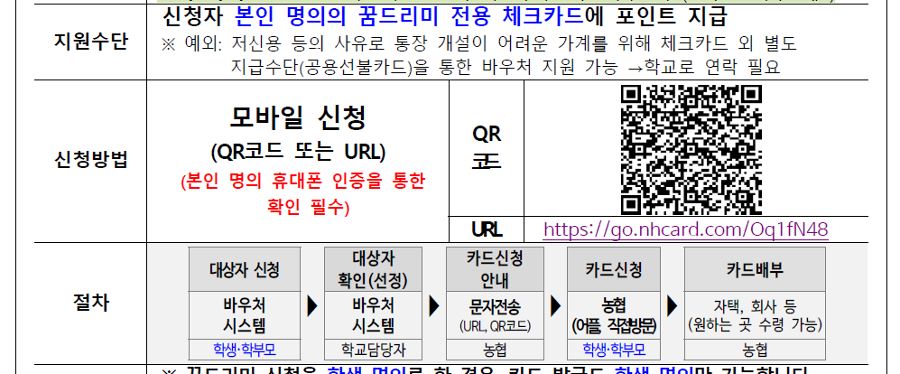 또한, 신청 후 카드가 발급되기까지 일정 시간이 소요될 수 있으므로, 교육 활동이 집중되는 시기(예: 수학여행, 체험학습 등) 이전에 미리 신청을 완료하는 것이 바람직합니다.