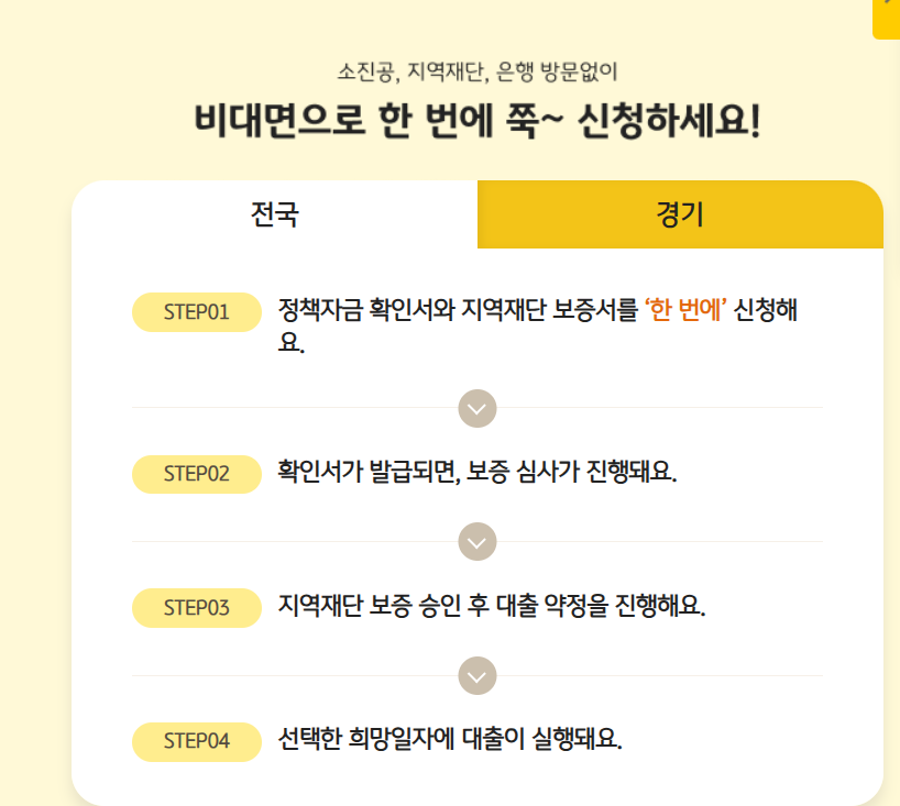 특히 이번 이벤트는 전 고객 대상이 아닌, 비대면으로 대출을 신청한 고객에 한해 제공되는 한정 혜택이기 때문에, 대면 방식으로 신청할 경우 이자지원금 및 이벤트 응모가 제한될 수 있습니다. 따라서 이벤트 참여를 원하는 소상공인분들께서는 반드시 비대면 채널을 통해 신청하시길 권장드립니다.