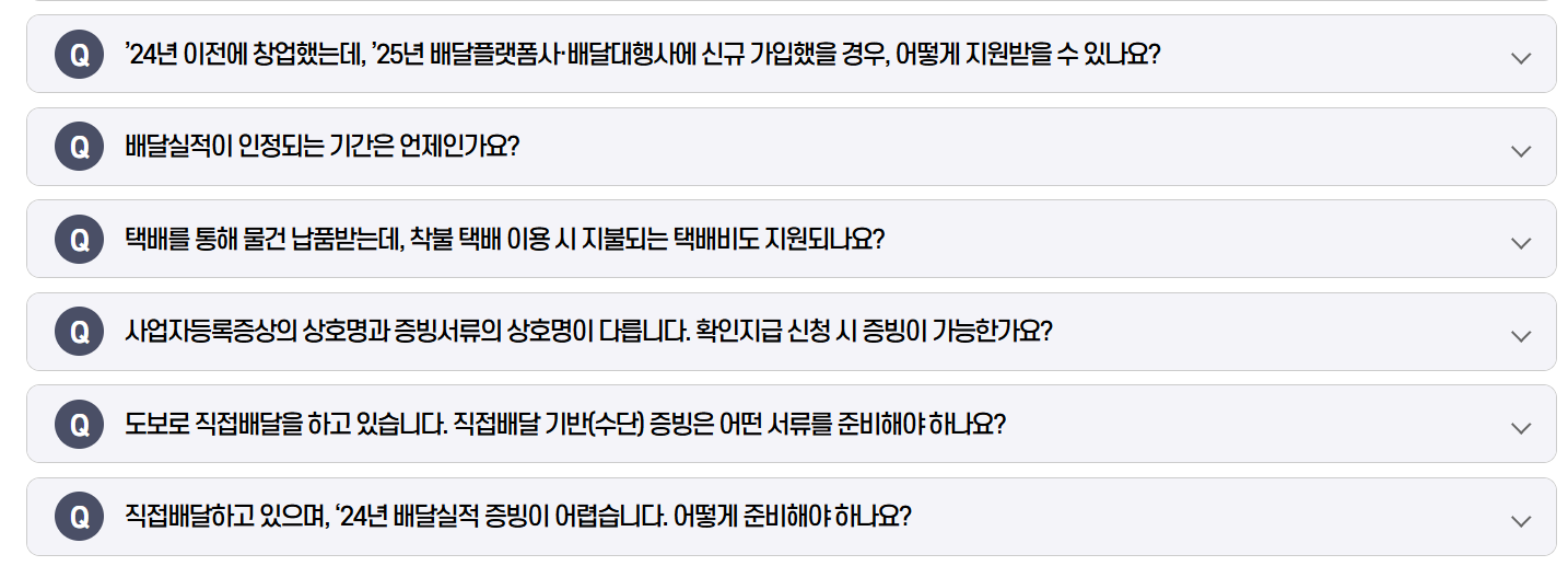 - 배달·택배 실적: **2024년 1월부터 2025년 12월까지의 배달·택배비 이용 실적**이 있어야 합니다. 이는 지원금이 실제 발생한 비용에 대한 것임을 의미합니다.