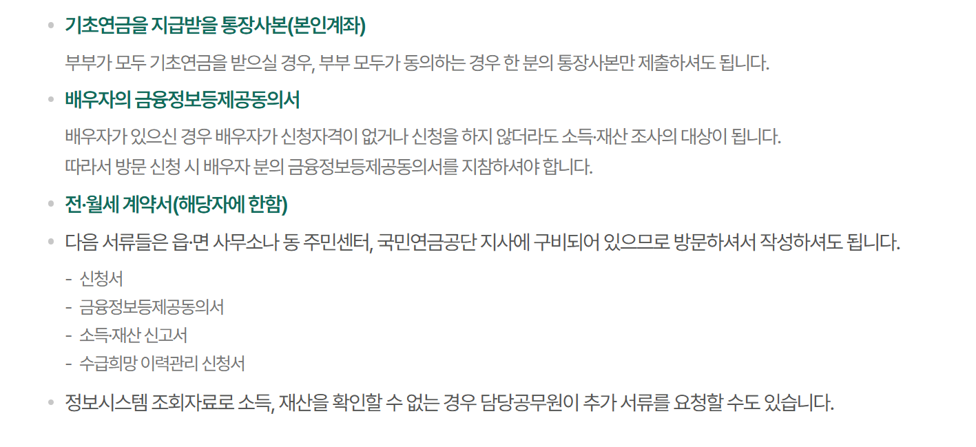 기초연금 신청에 필요한 서류
