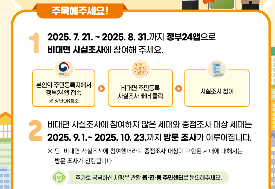 - 비대면 조사: 2025년 7월 21일(월) 09:00 ~ 8월 31일(일) 24:00