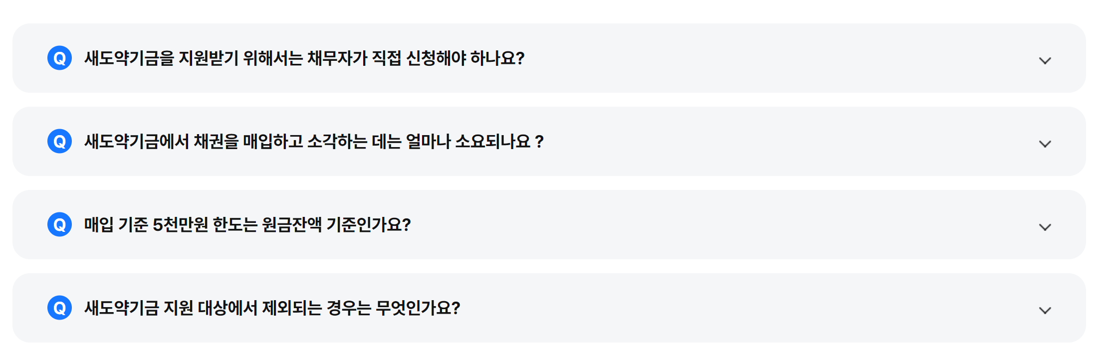 이 세 가지 조건을 모두 충족한 경우, 새도약기금이 자동으로 채권을 매입하고 심사를 거쳐 탕감 또는 조정 절차가 진행됩니다.