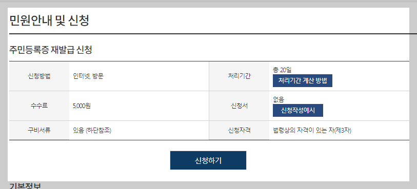 - 인터넷으로 재발급할 경우 총 20일 소요