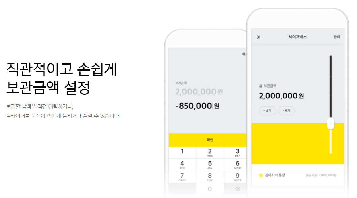 카카오뱅크 계좌를 가지고 있는 사람이라면 누구나 가입가능하며, 계좌 하나당 세이프박스 하나를 연결하는 구조이기 때문에 1계좌 1세이프박스로 진해되며, 계좌가 2개라면 2개의 세이프박스도 가능합니다.
