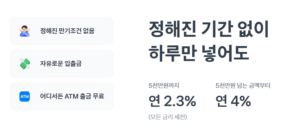 다만 5,000만원 이상의 금액에 대해서만 4%이며, 5,000만원 이하의 금액에는 연 2.3%의 금리를 제공하고 있다는 점이 특징입니다.