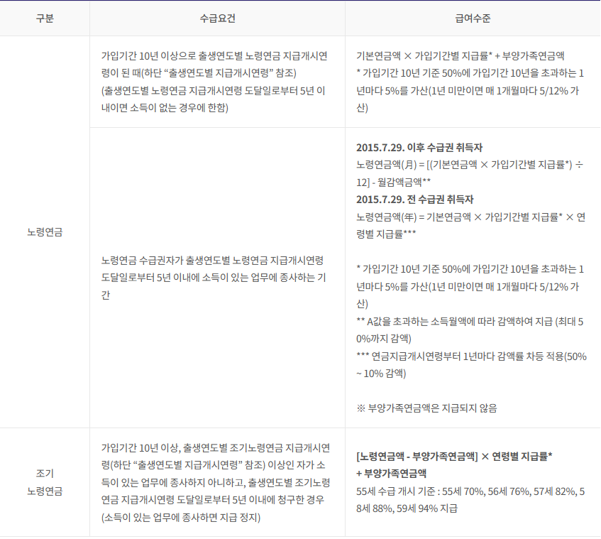 위의 조건을 충족하면 국민연금 수급 대상자가 되어 월별 연금을 수령할 수 있습니다.
