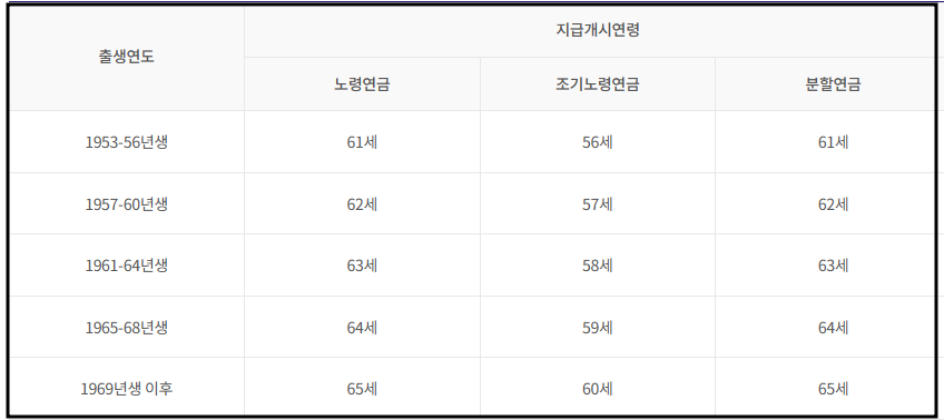 ✔ 1953년부터 1956년생이라면 61세부터 가능하며,