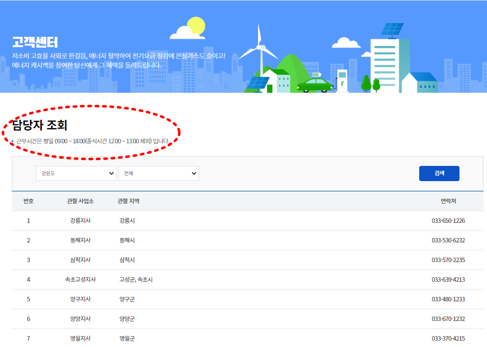 또한 에너지 캐시백에 대해 여러가지 궁금한 점이 있을 수 있는데요, 공통 문의전화 번호가 있지만 지역 담당자에게 바로 연락하는 것이 가장 빠릅니다.