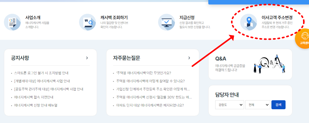 따라서 이사 후 새로운 주소지로 신규 신청을 해 주어야 하며 하지 않으면 에너지캐시백 받을 수 없으니 꼭 주소변경을 해주셔야 합니다.