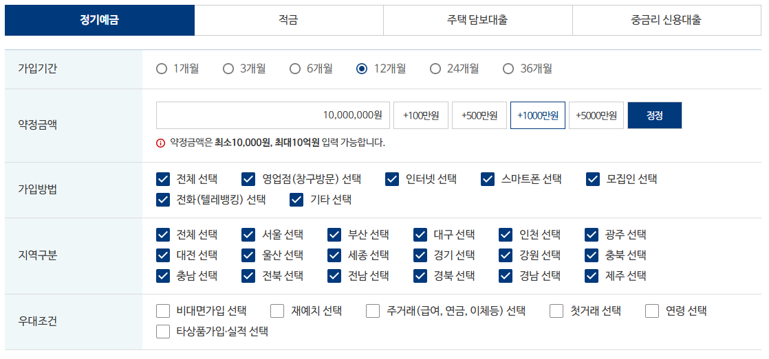 세부 금리 비교 (6개월, 12개월, 24개월 기준)