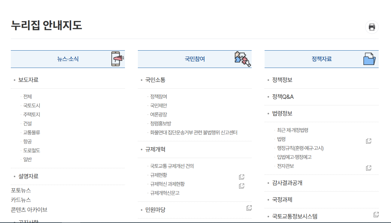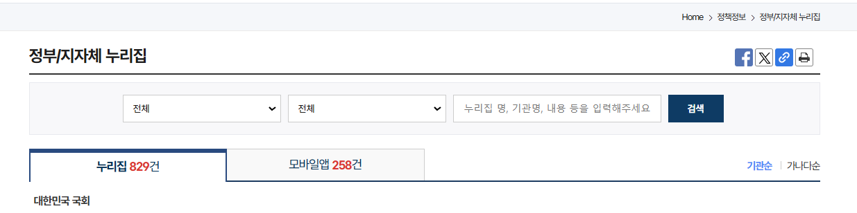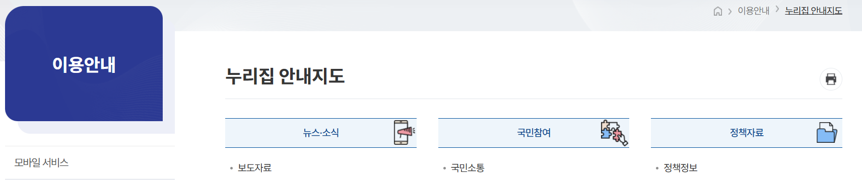 특히 누리집 안내지도 서비스를 이용하면 중앙정부 뿐만 아니라 각 지자체, 또는 키워드별로 공식 누리집 홈페이지로 바로 안내되므로 굉장히 편리하게 이용할 수 있습니다.